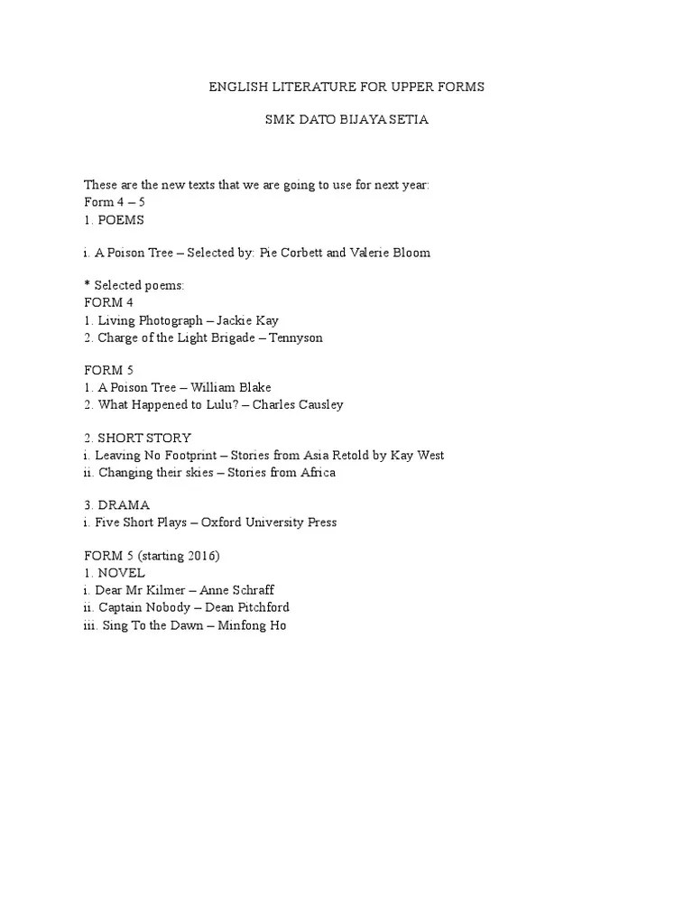 Novel English Form 5 : Poems And Novels Dear Mr Kilmer Form 5 Spm Hobbies Toys Books Magazines Textbooks On Carousell
